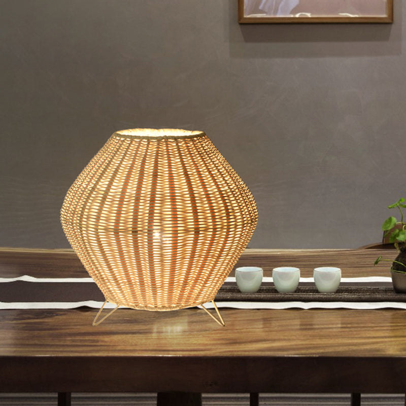 Handmade Rattan Table Lamp Rustic Bedside Desk Light